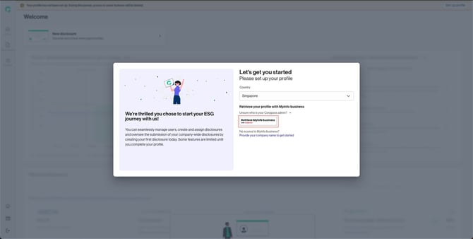 Seamlessly set up your profile with your Myinfo business (MIB) profile using Corppass. This grants you instant verification and provides access to all the key reporting features available on our platform.